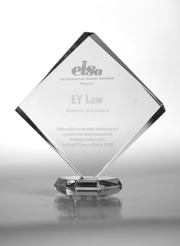 Kancelaria prawna EY Law została uznana za najlepszego pracodawcę i najbardziej atrakcyjne miejsce pracy, spośród kancelarii prawnych, w badaniu ?Studenci Prawa w Polsce 2015?. To kolejny sukces w badaniu przeprowadzanym corocznie przez Europejskie Stowarzyszenie Studentów Prawa ELSA Poland. Kancelaria obroniła bowiem tytuł zdobyty w 2014 roku.
